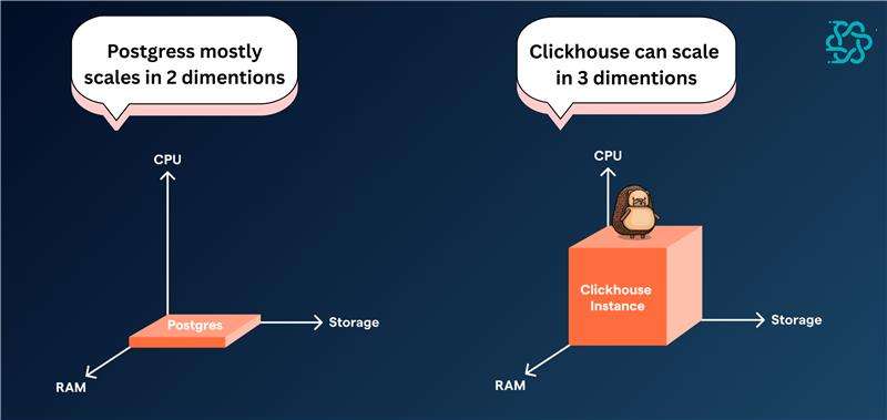 ClickHouse scales horizontally across multiple nodes, making it a better choice for distributed analytical workloads.